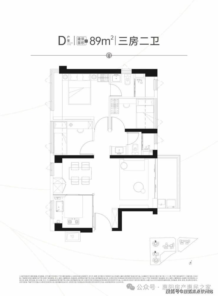 89㎡的3房2厅2卫,A户型,设计的是经典竖厅格局,客厅实测3.19米开间,LDKB一体化,S墙设计预留冰箱卡槽位,动静分区,3个卧室分别做到了主卧11.96㎡/次卧5.96㎡/次卧5.85㎡(去掉墙体,实测面积),L型厨房,卫生间干湿分离,东南或东北朝向。