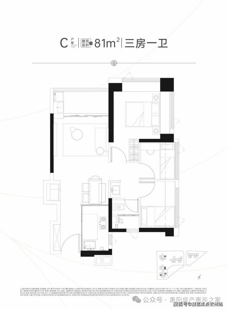 81㎡的3房2厅1卫,C户型,设计的是竖厅格局,客厅实测3.21米开间,LDKB一体化,S墙设计预留冰箱卡槽位,动静分区,3个卧室分别做到了主卧11㎡/次卧5.6㎡/次卧4.71㎡(去掉墙体,实测面积),L型厨房,卫生间三段式分离,西南或东北朝向。