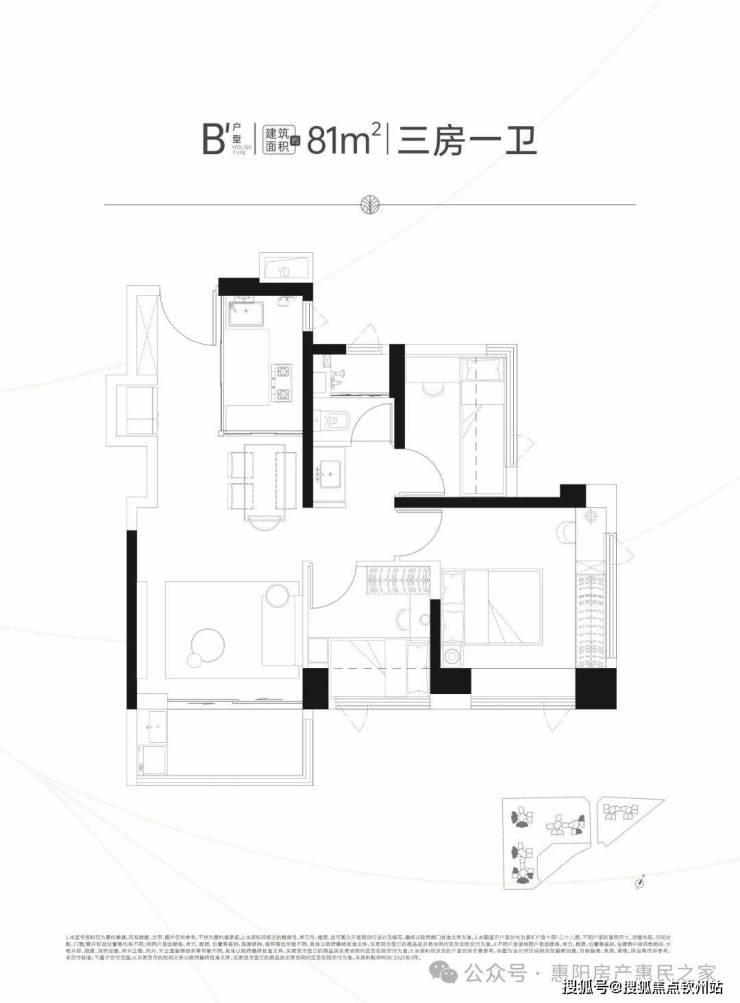81㎡的3房2厅1卫,B户型,设计的是经典竖厅格局,客厅实测3.45米开间,LDKB一体化,S墙设计预留冰箱卡槽位,动静分区,3个卧室分别做到了主卧12.24㎡/次卧6.2㎡/次卧5.67㎡(去掉墙体,实测面积),L型厨房,卫生间三段式分离,西南/东南或东北朝向。