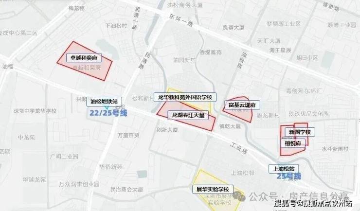 项目周边以高新技术产业为核心,依托坂雪岗科技城(华为总部所在地)及龙华数字经济圈,聚集大量科技企业与研发机构。此外,片区规划了国际商务区与多元产业升级,未来将引入更多科创企业及配套服务设施,形成产城融合的生态圈。