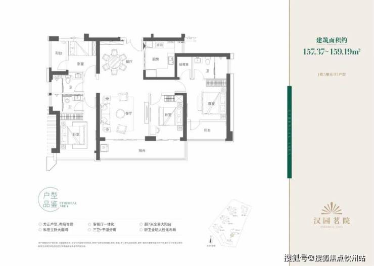 (1)109-112㎡三房两卫、157-159㎡五房三卫、168-169㎡五房三卫(四阳台设计);