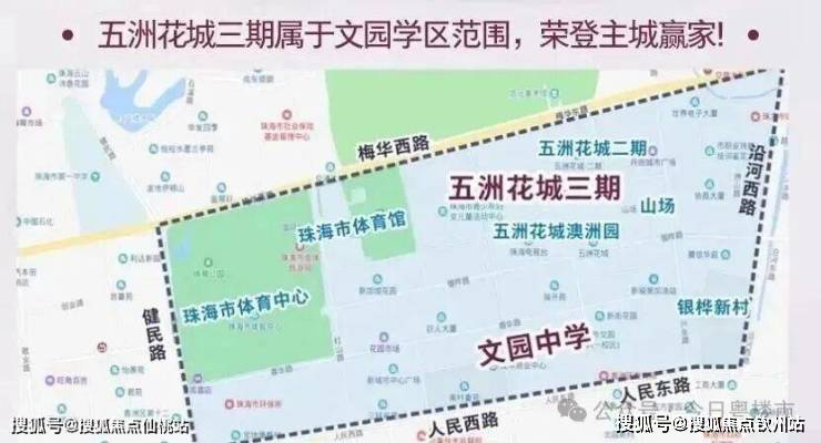 香山学校就在五洲花城二期对面,虽然不是能稳居珠海第一档的小学,但也是前列了。即将开建的文园小学位于五洲花城三期对面。