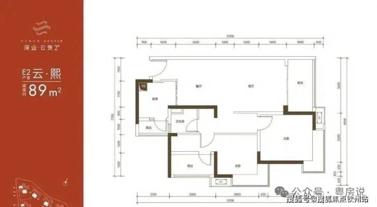4、深业云筑2期的户型得房率还不错,不含赠送都达到了约80%的得房率,赠送面积也不算少,如果加上赠送基本都在90%左右的得房率,主要就是89㎡的户型设计才1卫有点不符合刚需的需求。