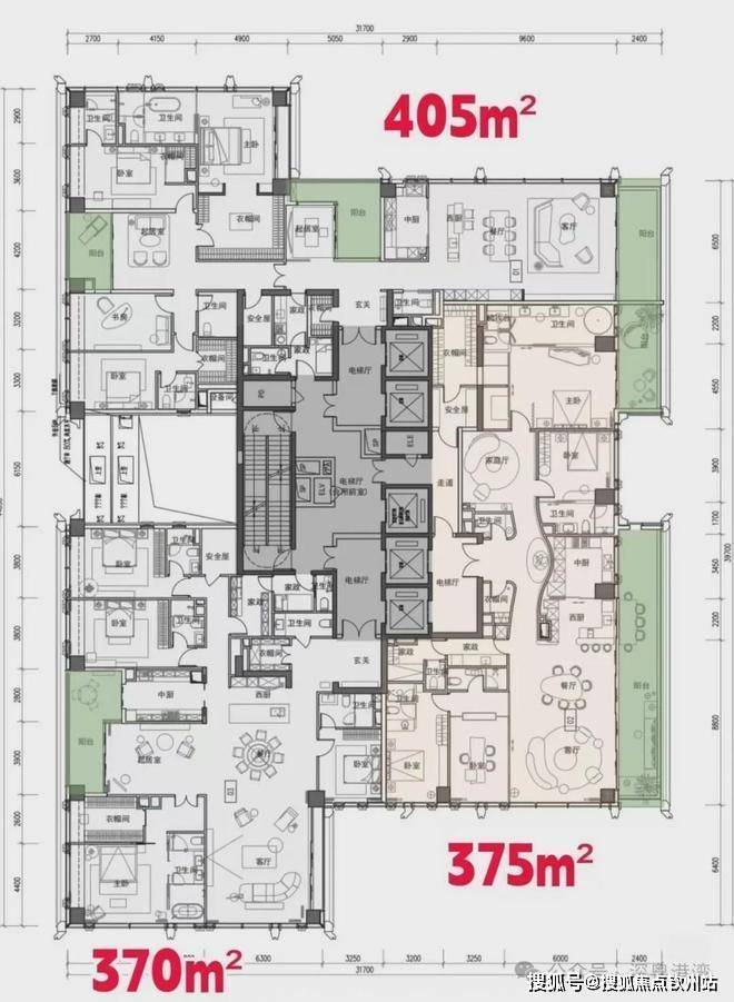 项目容积率7.59,限高250米,规划5栋超高层住宅,采用全玻璃幕墙设计,实用率高达92%以上,主力户型200㎡以上大平层。
