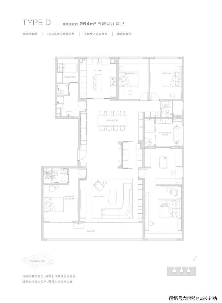 【264㎡户型】10.3米南向景观阳台-南北双景观-主套步入式衣帽间-独创灵动岛设计,生活场景多重切换