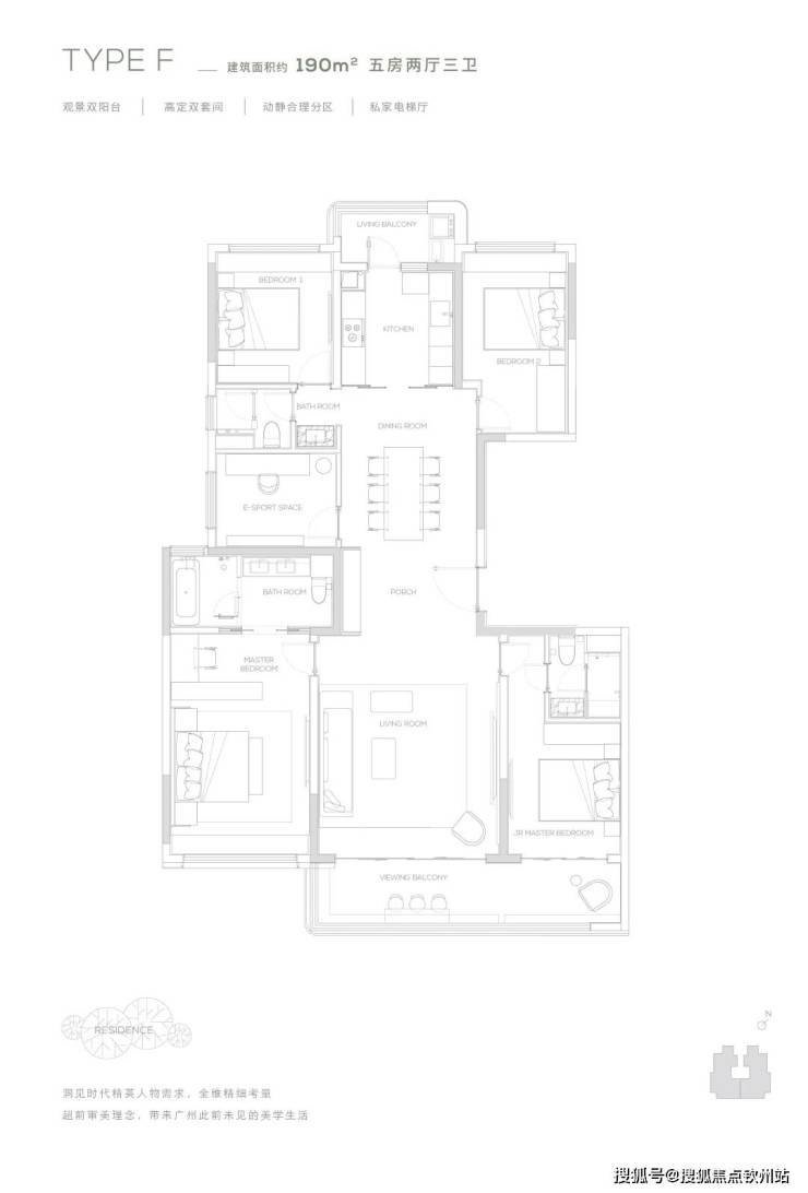 【190㎡双阳台户型】观景双阳台-高定双套间-私家电梯厅-双洄游动线