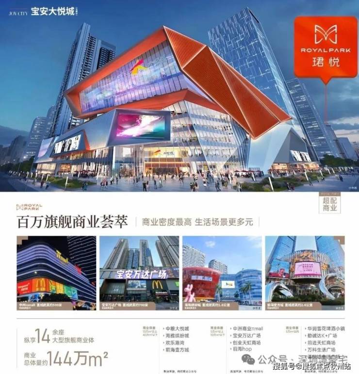 项目自带的商业体量约3.1万㎡,同时紧邻深圳首座中粮大悦城(16万㎡商业MALL),形成区域核心商圈。1公里范围内还聚集了中洲πmall(6万㎡)、宝安万达广场(19.8万㎡)、海雅缤纷城(36万㎡)及壹方城(36万㎡)等大型商业综合体,覆盖零售、餐饮、娱乐等多业态需求。此外,项目周边社区底商丰富,步行范围内可满足日常生活采买需求。