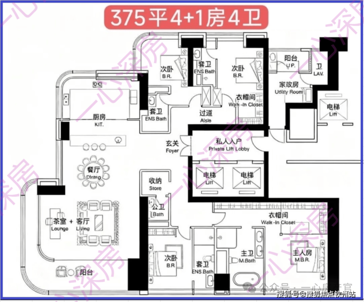 空间布局:部分顶级户型(如495㎡户型)享有专属电梯厅(约18㎡),并可专属电梯直达顶层私人会所,会所内规划有无边际泳池、空中花园等设施。这反映了项目对高端圈层私密性和专属服务空间的重视。