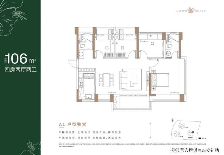 106㎡的4房2厅2卫,折后总价315-335万/套,单价2.97-3.16万/㎡。