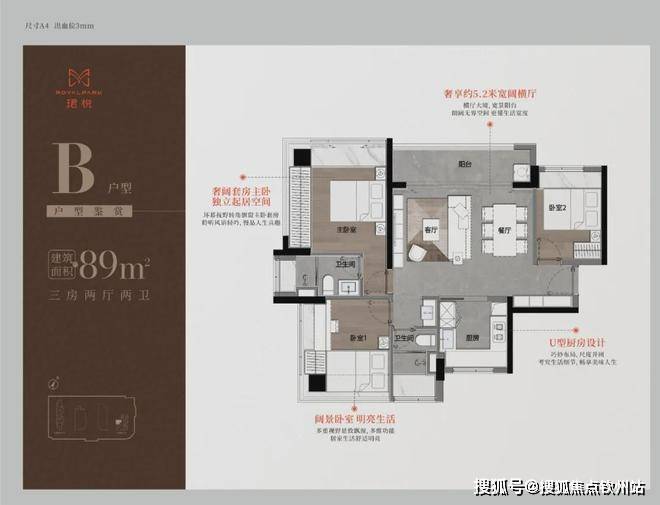 89㎡三房二卫C/D/E户型,位于2栋一单元,双阳台,小卧室还有厨房对凹槽采光。