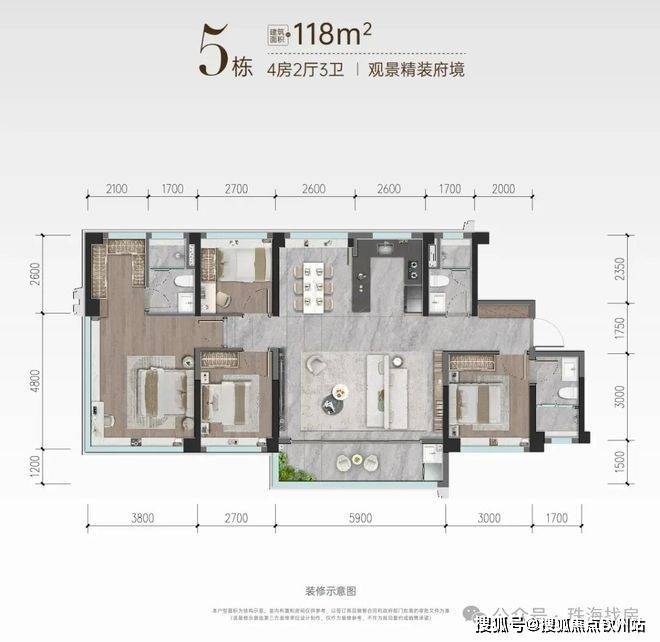 ◎5栋04房【约118㎡四房三卫】