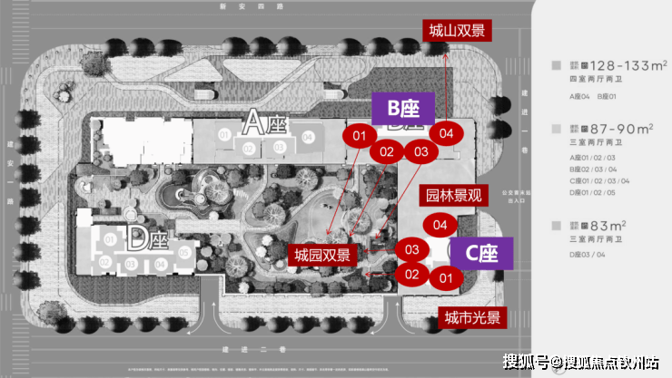 推售面积段:83-90㎡3房(745万-858万);128-133㎡4房(1160万- 1245万)