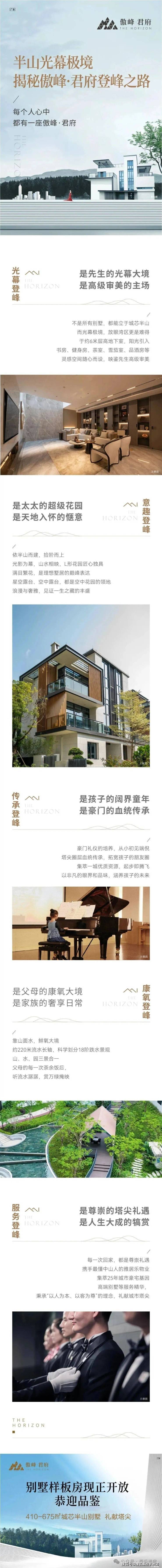 当物质早已充盈,人们对精神的需求更甚,对生活空间的尺度更精益求精,也更会在居家的点滴里品味生活之趣。傲峰·君府深谙现代居住需求,匠心打造建面约410-675㎡城芯半山别墅,充分赋予空间想象力。