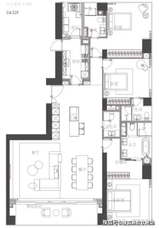 3. 主卧L形全景落地窗,270°最佳观海位。南向超大三厅一体,奢华大气。