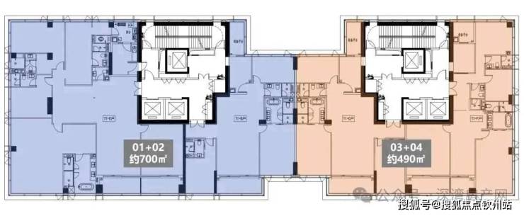 【一栋 三、四单元】(3梯2户)总高38层,23层以下为商办,23层以上为公寓,6-22层为商办。