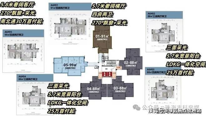 建面约95-115㎡三至四房 宽幕高层;