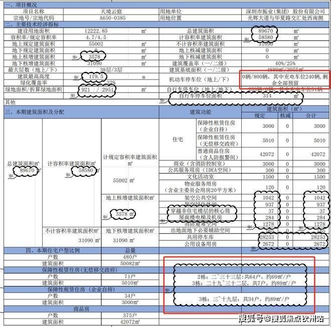 总规划480户,其中商品房375套,公租房71套,企业自持租赁住房34套,1/3栋是3梯5户设计,2栋2梯5户设计,地下3层,规划停车位800个,车位占比1:1.66。