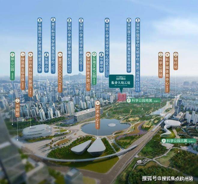 关于光明这个大公园,我认为是深圳未来做为粤港澳湾区引擎的核心建筑标志,多年后回头望,说一定还是一个时代的精神印记,下面介绍下,『振业天境云庭』一路之隔的科学公园。