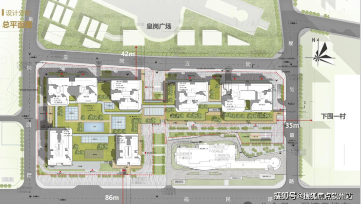 其中一期占地面积为31428.9㎡,计容建筑面积174082.2㎡,容积率5.54,共五个单元塔楼,其中一至四单元为回迁住宅,总面积101500㎡,五单元为一期唯一可售住宅,总建筑面积30807.64㎡,商业41503.6㎡,停车位1266辆。