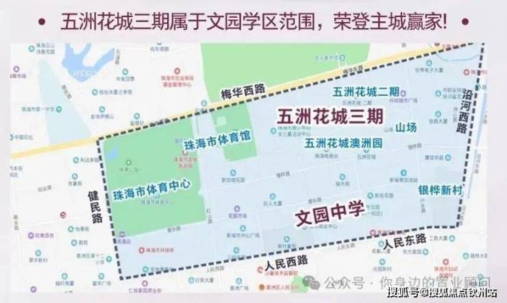 香山学校就在五洲花城二期对面,虽然不是能稳居珠海第一档的小学,但也是前列了。即将开建的文园小学位于五洲花城三期对面。