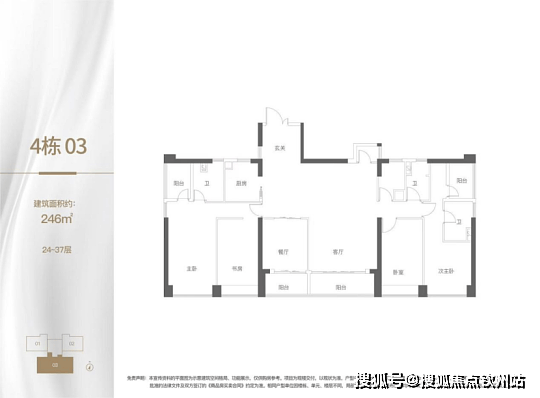 B. 237-239㎡四房两厅三卫 + 保姆房(楼王单元)
