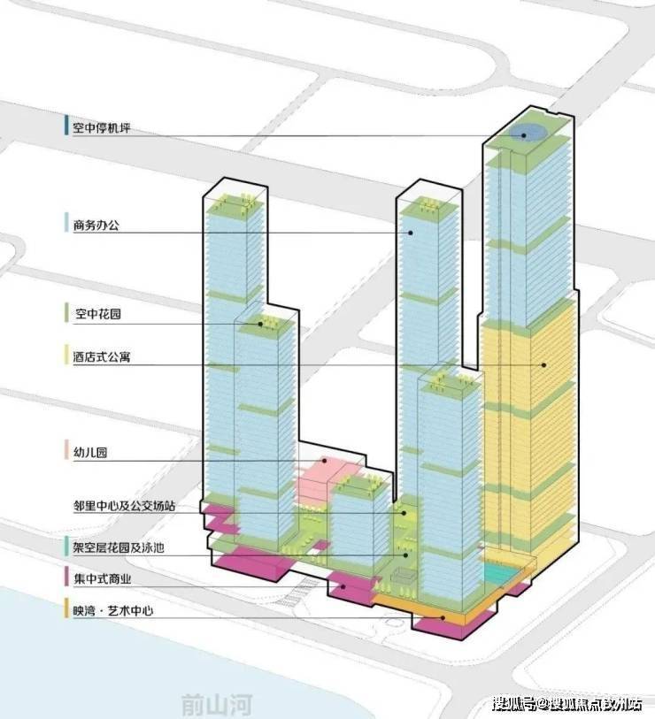 项目由6栋组成,最高的一栋可达到258米,直入云端。单凭这个高度,鹏瑞·珠澳湾中心在珠海主城区就是一个颠覆级别的地标建筑。