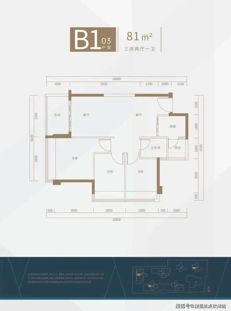 该户型朝西,次卧朝南,也是双阳台设计,整体布局与65㎡相似,是65㎡的加大版(多一个房间)