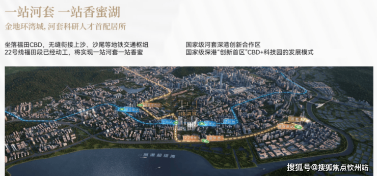 随着区域规划升级,项目 地处深港超级湾的起点位置,可 同时享受河套深港科技创新合作区、香蜜湖新金融中心、环中心公园活力圈“三大新引擎”的辐射红利