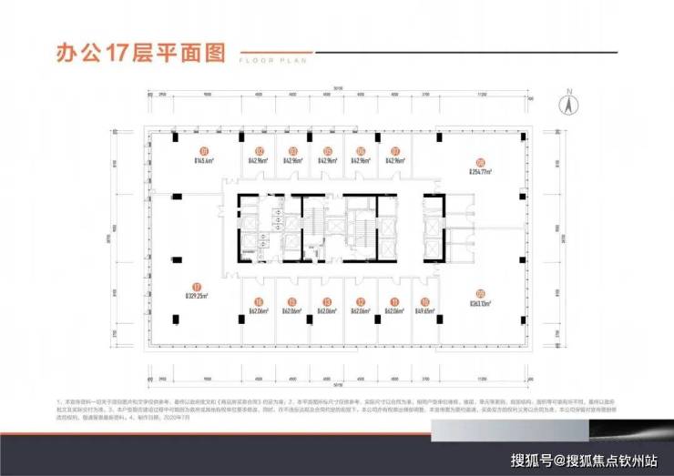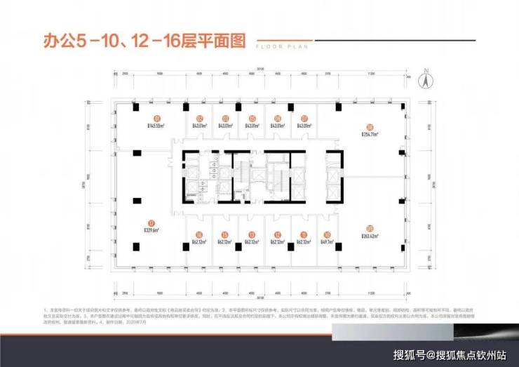 📍约43-421㎡灵动办公(4.5米高):3F、5F-10F、12F-17F,4+1(消防)梯15户;