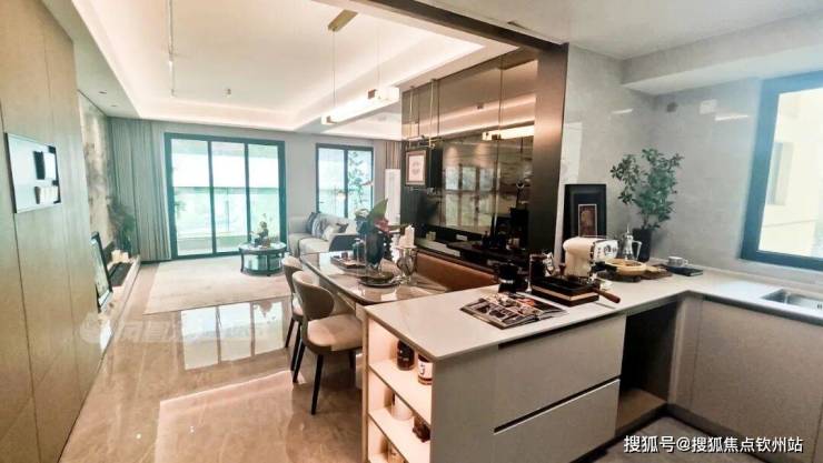 开放式餐厅串联客厅,加上南面长达6.7米的景观大阳台,真的让人感觉舒适无比。