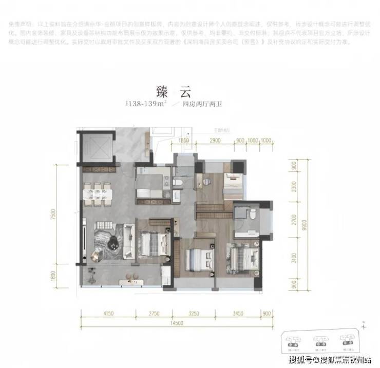 建面约138-139m四房两厅两卫;