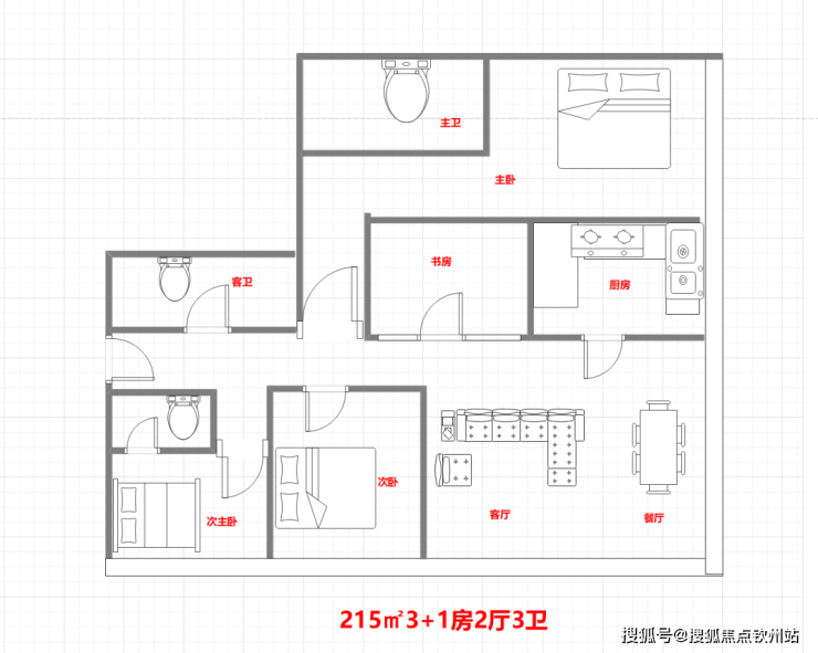 户型面积:68-228㎡,涵盖2至4房;