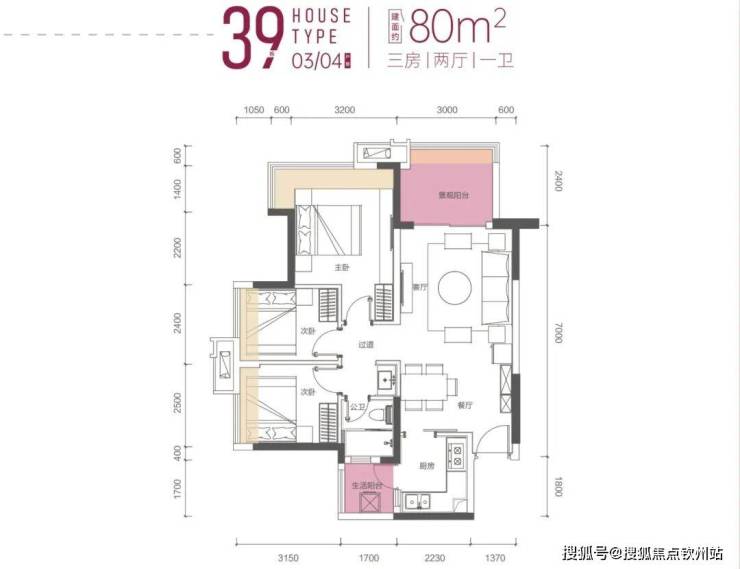 80㎡三房一卫(38、39栋户型一致)