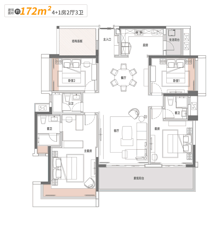 华鸿禧悦轩建面约140㎡户型最受欢迎;东区大平层稀缺,建面约172㎡,也成为不少人选择;