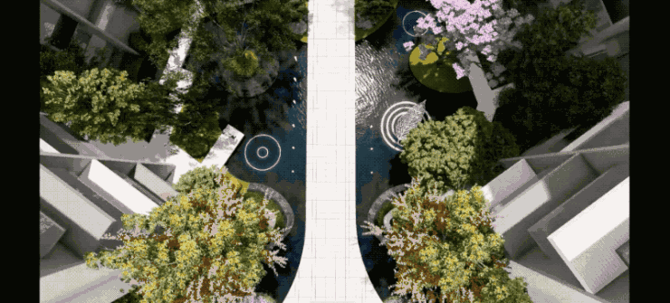 项目的品质感,直观体现在社区整体设计及园林上:它遵循着“三轴四园”的规划设计,既有岭南水乡“小桥流水”的美好意境,又有色彩、声音、花香层层递进的感官体验,别有一番滋味。