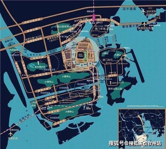 交通:北接杧洲隧道(建设中),衔接横琴二桥、金海大桥等;经横琴口岸 5 分钟达澳门,30 分钟达香港;近珠机城际,规划横琴高铁站、广珠澳高铁。