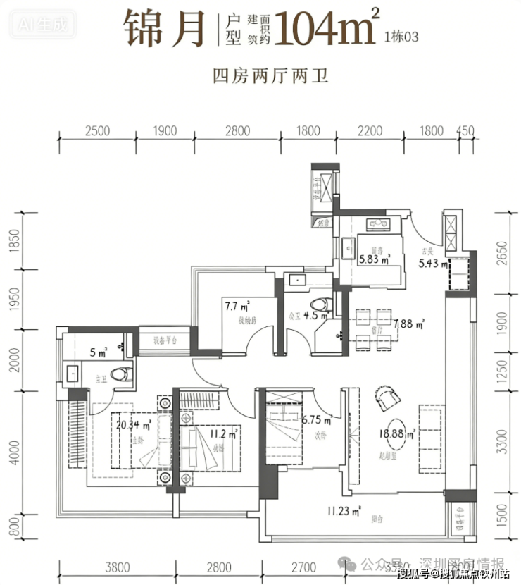 104-107㎡4 房 2 厅 2 卫
