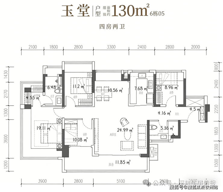 项目主打建面约 89-130㎡精装 3-4 房,全系遵循大面宽、南向采光、动静分区设计,搭配 270° 无柱转角飘窗与超大景观阳台,得房率高达 97.47%-104.06%,空间实用性拉满。