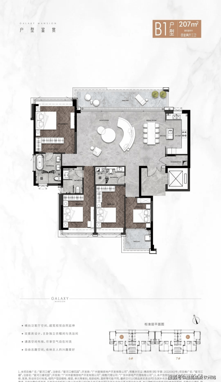 产品规划为176-235平的大平层,全部都是双套房设计,