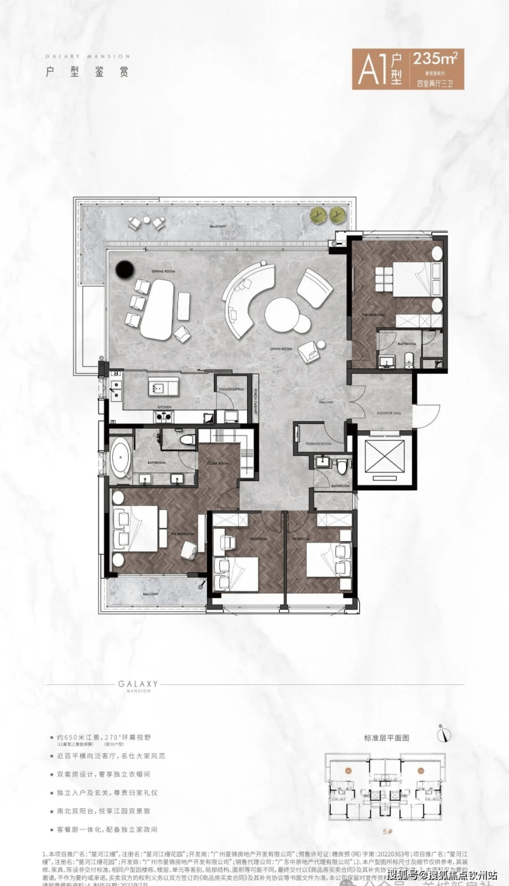 项目主打建面约179-235㎡四房三卫双主套户型,设计以“江景最大化”为核心: