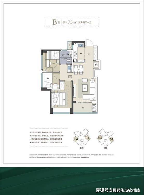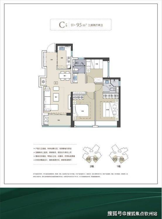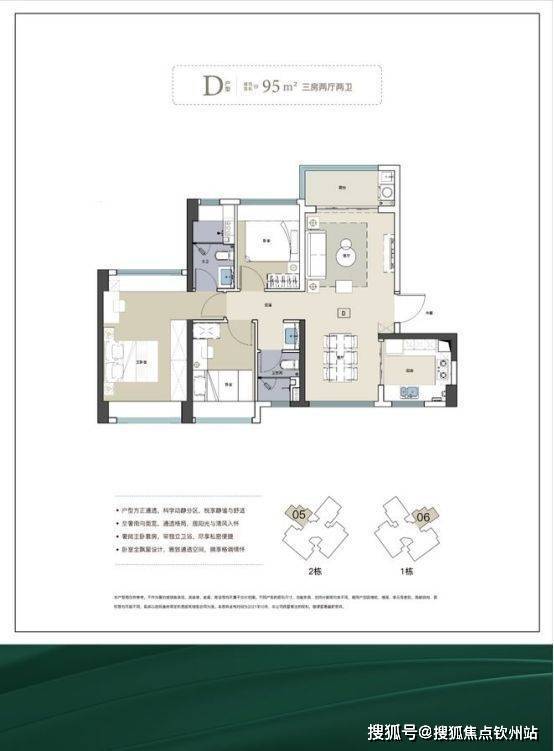 梯户比:全部 2 梯 6 户设计。