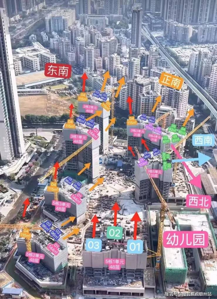 3栋1单元:总层高48层3梯4户,01户型144平,02.03户型96平,04户型115平