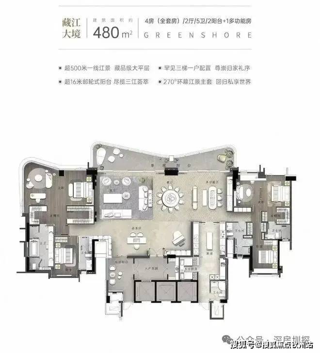 画江为界,跨越时代的岛尖藏品,4套房2厅5卫+1多功能房设计,4.0时代人居范本,重新定义珠江豪宅天花板。