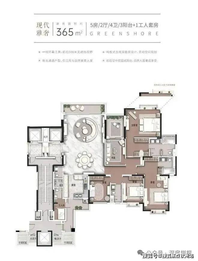 约365㎡5房双套房|2厅|4卫|3阳台+1工人套房