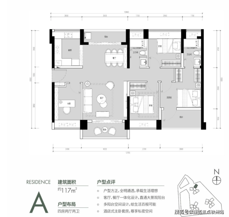 约117㎡户型做到了真四房+全明通透,可满足三代同堂及成长型家庭所需。