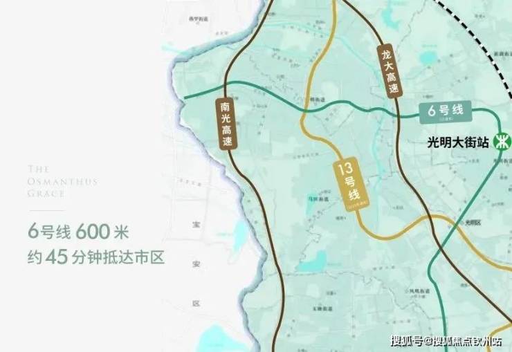 “3横2纵”约45min市区CBD便捷通勤;6号线光明大街站约600m,直抵城际核心圈。