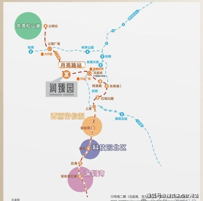 地铁交通:直线距离约500m到达地铁13号线月亮路站(建设中),1站凤凰城,9站到南山(约30分钟到达南山)。2025年将推动13号线二期(北延)建成通车(信息来源:宝安日报)。