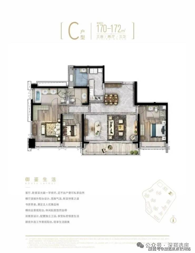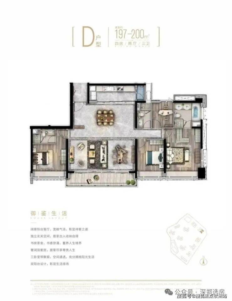 臻稀阔邸,抢藏从速:建面约103-200㎡3-4房宽境美宅,罗湖屈指可数的纯粹绝版大户型高端住区,全景观超大阳台,将山景、水景、园景尽收眼底;双主卧套房配置,纵享私密奢华空间。