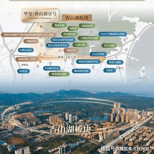 基本信息:项目位于珠海市香洲区健民路北侧、旅游路东侧,香山湖公园对面。总占地约 7.93 万㎡,总建面约 21.57 万㎡,容积率 2.72,绿化率 35%,总户数约 960 户(S1 地块)。由 9 栋高层组成,围合式布局,打造 “一轴一环九园” 景观。梯户比为两梯两户或两梯三户。