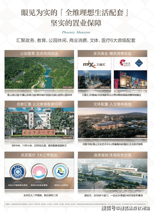 休闲:与香山湖公园仅一路之隔,周边还有 20 多个城市公园。此外,香山文化艺术中心、香洲区图书馆等市政配套也在附近。
